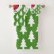 Cartoon Red Cardinal on Green White Pines Pattern Bath Towel Set