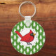 Cartoon Red Cardinal on Green White Pines Pattern Keychain