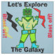 Cute green robot boy Captain Zacky is my original cartoon character smiling to say hello with red, black and yellow lightning bolts. Pattern has the wording, Let's Explore the Galaxy, Blast off in black and red text. Cluck Customize to edit background colorand font colors. Use to sew a special nursery chair pillow, drapes, valances, crayon holder, apron, etc. Transparency set for whites. See Store for matching robot themed items. Original Artwork Design by TamiraZDesigns.
