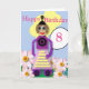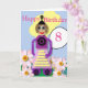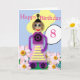 This fully editable children’s birthday card features a colourful cartoon girl robot with the caption “Happy Birthday” and the number 8. The inside caption reads “Have a Great Day”