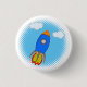Custom buttons with cartoon rocket and clouds with newsprint effect on blue background.