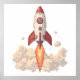 Cartoon Rocket Launching with Fiery Exhaust Poster