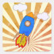 Cartoon rocket and clouds with newsprint effect applied to drawings. Retro sunset version.