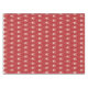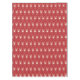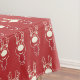 Cute, smiley Rudolph the reindeer cartoon on red Christmas table cloth.