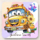 The "Cartoon School Bus Driver Stay Safe" design captures the essence of sweetness and charm in one delightful image. A cute yellow school bus takes center stage, featuring endearing big eyes on its windshields and a cheerful smiley face at the front bottom, radiating warmth and friendliness.