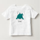 Funny cartoon blue and white shark with big pointy teeth and small black oval for eyes and blowing bubbles. Below is a template to add your child's name to personalize.