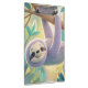 Cartoon sloth hanging upside-down from a branch clipboard