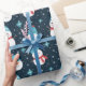Cartoon Snowmen Dark Blue White Pattern Present Wrapping Paper