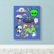 Cartoon Space Aliens Grays UFO Art Collage sheet Canvas Print