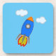 Cartoon rocket and clouds with newsprint effect applied to drawings. Original design.