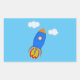 Cartoon Space Rocket In Blue Sky Rectangular Sticker