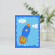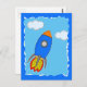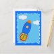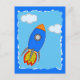 Cartoon Space Rocket In Blue Sky Torn Paper Postcard