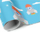 Cartoon Space Rockets Bright Blue Pattern Wrapping Paper