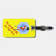 Fun luggage tag, with a cartoon super hero theme. Done in blue, yellow, red, and black with a cartoon super hero to protect your bag. Personalize the text to read what you want. Great luggage tag for boys.