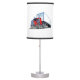The lamp looks exactly like the picture, bright and colorful. The lamp shade is plastic not what I expected, however I love it! The printing is clear and the name can easily be read.