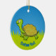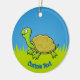 Cartoon illustration of a happy turtle. Custom text on both sides.