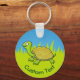 Cartoon illustration of a happy turtle on green grass. Custom text on both sides.