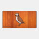A digitally produced wood carving, or engraving, of an Atlantic Puffin. Add your own text.