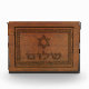 Features a computer-generated "old wood carving" of a Magen David (Star of David), text reading "Shalom" and a floral border. The floral border is based on carving found on 3,000-year-old wooden beams which may have been used in the construction of the First and Second Temple in Jerusalem.
