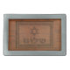 Carved Wood Shalom Rectangular Belt Buckle