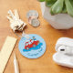 Cartoon of a man in blue form hand washing a red car. Custom background color. Custom text on both sides.