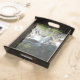 This is a well made, sturdy wooden tray with a flawless black finish and lovely map on the tray surface. It is both vintage & modern at the same time. Looks exactly like the photo; does not disappoint. So nice to find something of quality individually made and not the mass-produced 'shabby chic' merchandise seen in stores. I am so pleased to be able to give this to my college-age niece for her birthday. This can be used as a tray to hold jewelry or toiletries, or hung on the wall as art. The map surface is sealed (it is slightly shiny) so would be moisture resistant. It is well worth the asking price but I was able to apply a sale code as well. Very happy with my purchase. Map is crisp & clear and sealed with a water-resitant finish.