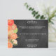The cascading abstract floral design makes this chalkboard wedding response card especially perfect for a fall wedding, but is beautiful for spring and summer weddings as well. Any bride and groom who appreciate the natural beauty of flowers will love this wedding set. Abstract roses in subtle shades of peach, orange, red, brown and green compliment each other beautifully in this chalkboard bridal reception card. Having a garden wedding? This reasonably price, modern, chic wedding card is perfect for you. You can easily personalize this trendy wedding set by using the given template or customize font colors by clicking "customize" and selecting the text boxes to change the fonts and colors.