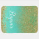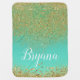 Cascading Gold Glitter & Teal Aqua Personalized Swaddle Blanket