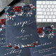 A navy blue and burgundy watercolor floral wedding invitation RSVP online card featuring a watercolor painted navy blue background with navy and burgundy peonies and dusty blue eucalyptus greenery.