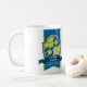 Casey name meaning shield in green and blue boys name mug. Galiant royal crown knights style crest shield monogram letter C art name mug perfect for kids and teens in shades of navy blue, blue, bright green and white. Personalize with your own name beginning with C and name meaning or a message or subject for a personalized touch. Reads Casey vigilant and brave Easy going, listens without presumption. Other names available on mugs and other matching products. Unique royal style crest drawing, featuring a bears head, crown, star and initial monogram C letter, graphic art and design by Sarah Trett www.sarahtrett.com for www.mylittleeden.com