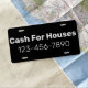 A promotional license plate makes it easy to get the word out about your real estate investor business. You can edit the text to add a business name, phone number, and a custom message. All text can be edited or deleted. The top half is white with black text. The bottom portion is black with white text.