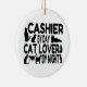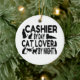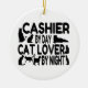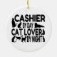 This adorable text design featuring the phrase "Cashier by Day Cat Lover by Night" and cute cat profiles is perfect for any cashier who loves cats.