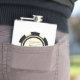 This off-white and black poker chip style flask would make a perfect gift for your birthday guests. Personalize the design with your name and birthdate # in black in the center, and birthday in red on top.