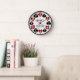 Create your own custom poker room / poker club casino wall clock using this cool, easy template. The background has a faint pattern of playing card suits (spades, clovers, hearts, diamonds). Over that, the white, art-deco style numbers rest on larger card suits in red and black. In the middle, you can easily add your name using the template, or delete the sample text to leave the middle blank. This is the perfect, personalized wall clock for your game room, whether you love poker, euchre, bridge, blackjack or any card games.