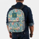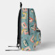 This cute and retro backpack features a monogram on a blue background with cassette tape patterns. Perfect gift for music lovers! Personalize it for your needs.