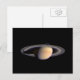 This space photograph is a view of Saturn taken by the Cassini-Huygens spacecraft from a distance of about 43 million miles. One of Saturn's moons, Enceladus, is visible on the left as a faint dot of light.