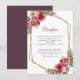 Chic Cassis, elegant and formal Wedding Reception Information enclosure card features features romantic floral wedding watercolor displayed with leafy greenery on a crisp classic white background. A sparkling golden color geometric crystal-shaped frame provides a trendy touch. Traditional, classic wording provides timeless sophistication. Personalize wedding details for your guests in elegant Cassis purple lettering and script. The back of the card is a simple matching Cassis purple. Feel free to contact me at invitationsuites@gmail.com if you have questions regarding this or any of our designs.
