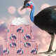 A fun modern pattern featuring a cassowary in a Christmas hat waiting by a tree