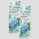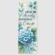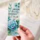 This beautiful bookmark graphic features a watercolor floral design with blue hydrangeas and green leaves. The center contains the biblical quote 'Cast all your anxiety on Him because He cares for you,' from 1 Peter 5:7, in an elegant script font, creating a serene and inspirational religious design.