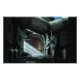 High contrast composition set in an abandoned castle. One of the towers has collapsed through the ceiling, damage marks and cracks can be seen on the walls, and dirt, rubble and puddles litter the ceramic floor. Disturbing gargoyles can be seen hanging over doorways, two creepy busts on the left, and suits of armor lining the wall to the right. The bright beam of moonlight coming through the large balcony door is the only light source in the scene, casting sharp dark shadows.