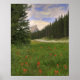 Indian Paintbrush wildflowers in bloom along Rte. 1a in Banff National Park in the Canadian Rockies. Castle Mountain is seen in the background.