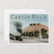 A view of castle tower shaped butte and a locomotive in Castle Rock Colorado in oil painting effect.
