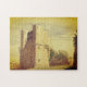 This puzzle design features a depiction of a castle like building.