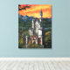 Castle Schloss Neuschwanstein art prints, posters, gifts, and accessories features our original art by Traci Van Wagoner of the famous 19th-century Gothic Revival palace sitting on a rugged hill above the village of Hohenschwangau near Füssen in southwest Bavaria, Germany at sunset. This beautiful castle painting is a perfect gift for anyone who loves castles, palaces, fantasy, and colorful art. The palace has appeared prominently in several movies and was the inspiration for Disneyland's Sleeping Beauty Castle and later, similar structures.