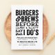 Burgers and brews before the couple says their I do's! This fun brewery-themed rehearsal dinner invitation is a fun way to invite friends and family to celebrate the night before the wedding. Customized to include the couple's names, this pre-wedding invite features bold black text on a white background (please not this is not text but just printed to look like it). This also works well for a casual engagement party, and engagement barbecue or cookout, a bachelor party and more. Customize all the details of the party. Matching party decor also available in the collection exclusively by Lea Delaveris Design. Also available as a digital rehearsal dinner party invitation.