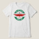 This promotional logo for a new t-shirt collection of an Italian brand features a circular shape with graphic elements extending outward. At the top, on a green background, is the words “NEW T-SHIRT COLLECTION” in white. In the center, inside a stylized shield, it reads “ITALIAN BRAND” at the top and “LUXE CASUAL” in the middle, both in black. Below, in red, is “DEFINITE 2025.” At the bottom, on a green background, is “PIEDMONT - TURIN” in white. The predominant colors are green, white, black and red, recalling the Italian flag and emphasizing the origin of the brand. The central shield lends prestige and tradition, while the green arrows suggest dynamism. The style is modern and elegant, with simple but effective characters, making the logo recognizable and memorable. The design clearly communicates the brand's Italian identity, the launch of a new t-shirt collection, and a sense of casual luxury, with specific reference to the Piedmont region and the city of Turin.