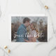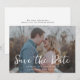 A modern and casual save the date announcement with your favorite horizontal/landscape photo overlaid with "save the date" in modern white casual handwritten font. The color of this is editable. Personalize further by add details of your wedding website with a QR code on the reverse.