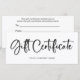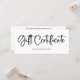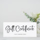 This stylish and modern gift certificate features a simple, clean white background, with trendy and elegant black handwritten script typography.
