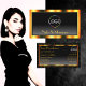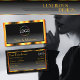 Make a lasting impression with this elegant and luxurious business card design featuring a shimmery orange frame and fine decor stripes with a modern black gradient background.