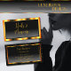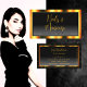 Make a lasting impression with this elegant and luxurious business card design featuring a shimmery orange frame and fine decor stripes with a modern black gradient background.
